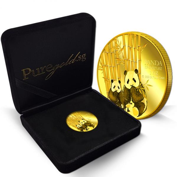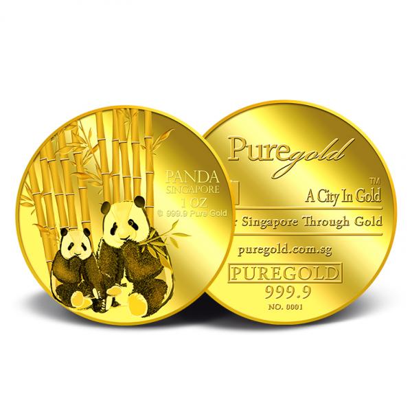 The image of the two giant pandas is embossed on a 1oz 999.9 fine gold.