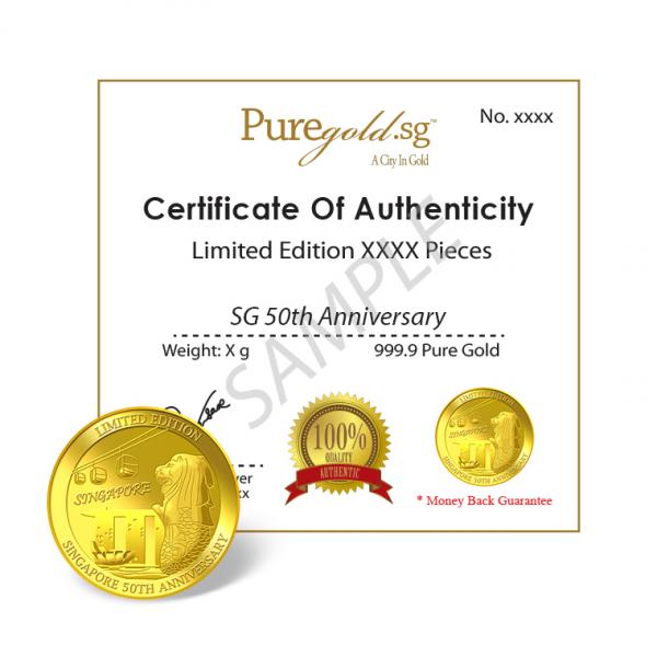 PureGold.sg will release not more than 2000 pieces of the Limited Edition Singapore's 50th Anniversary 1oz 999.9 fine gold Medallion.