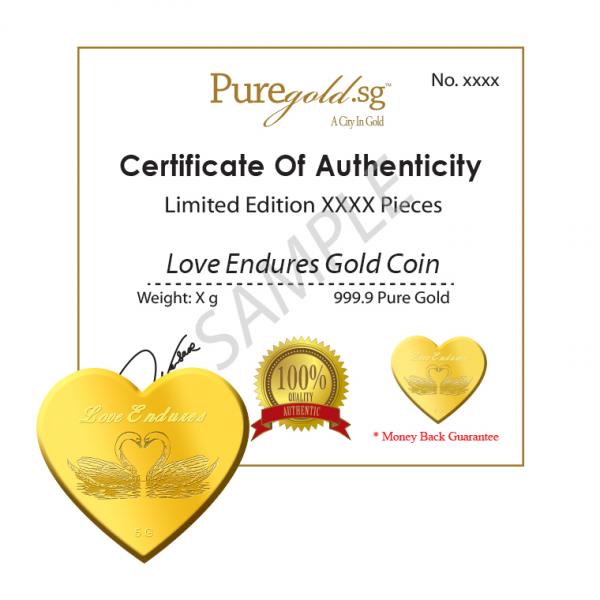 The Swan is embossed on 5g 999.9 fine gold Medallion. ”Engraving Your Love Notes " at the back of the pendant.