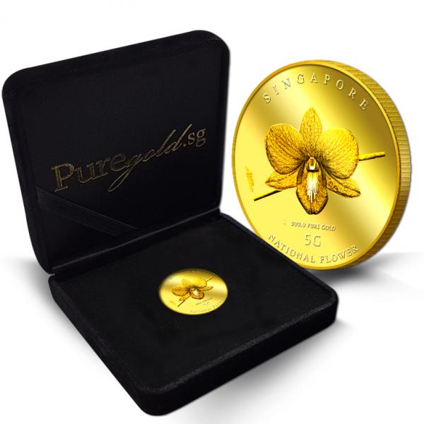The image of Singapore’s national flower, Vanda Miss Joaquim Orchid, is embossed on a 5G 999.9 fine gold Medallion.