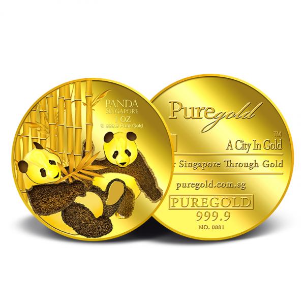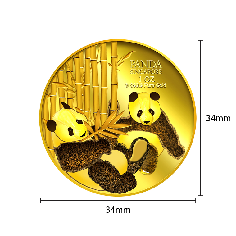 The image of the two giant pandas is embossed on a 1oz 999.9 fine gold.