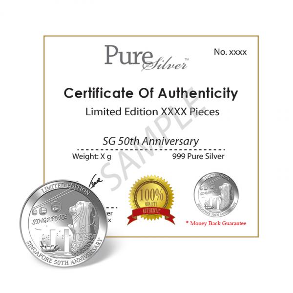 PureGold.sg will release not more than 2000 pieces of the Limited Edition Singapore's 50th Anniversary 1oz 999 fine silver medallion.