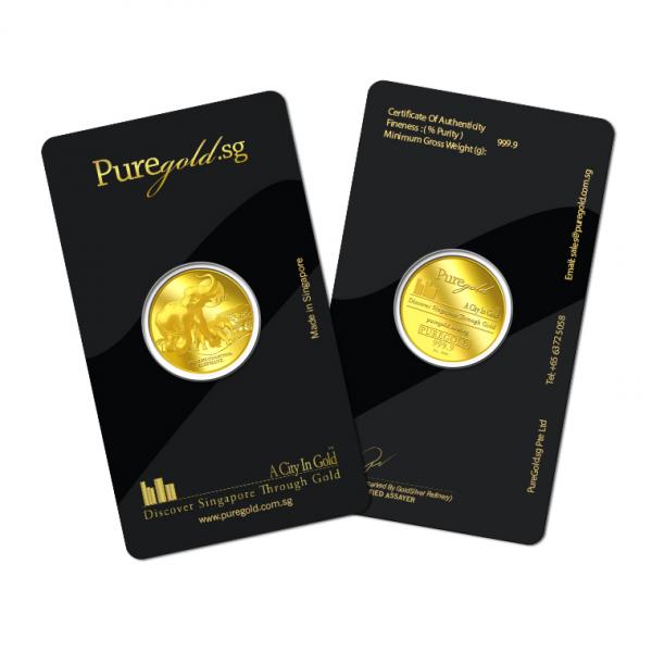 The image of an Elephant is embossed on a 1oz 999.9 fine gold.