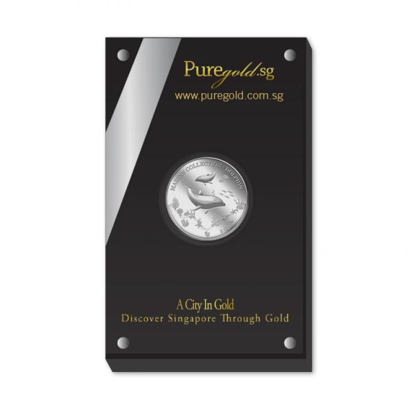 The image of the two dolphins is embossed on a 5g 999 fine silver medallion.
