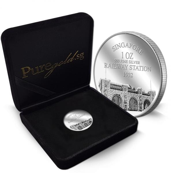The image of the now defunct Tanjong Pagar Railway Station is embossed on a 1Oz 999 fine silver medallion.