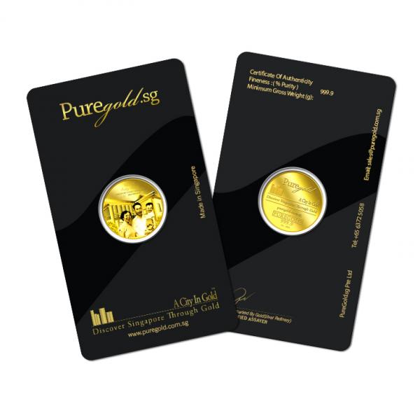 The image of Founding Father with his wife and son, and their house at 38 Oxley Road is embossed on a 5g 999.9 fine gold medallion.