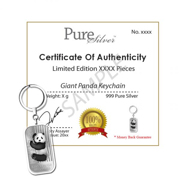The images of Giant Panda are embossed on a 5g 999 fine silver bar.