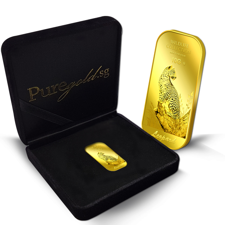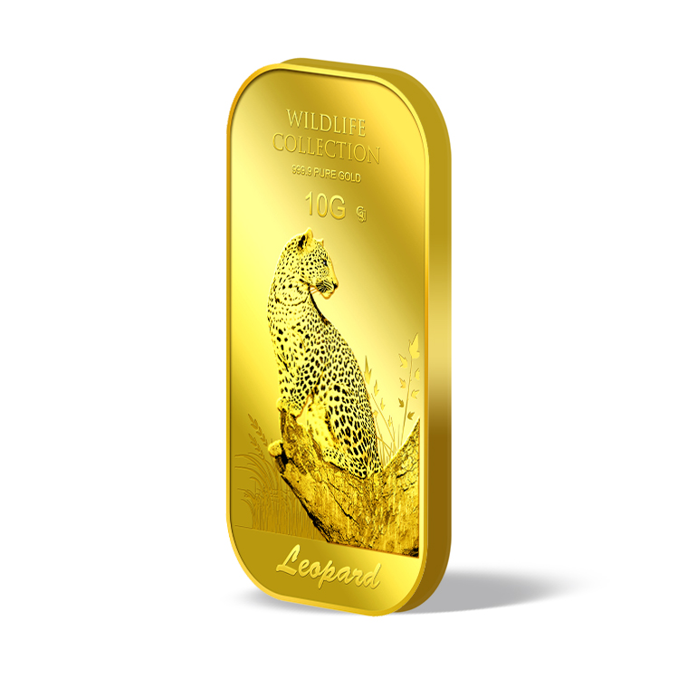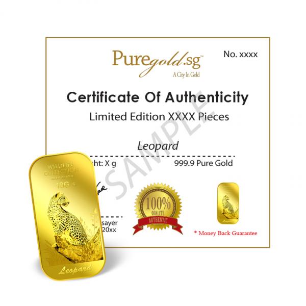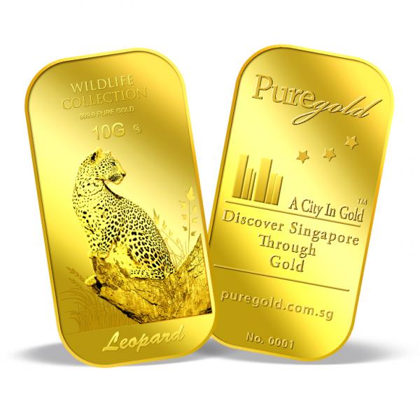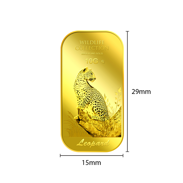 The image of the leopard is embossed on a 10g 999.9 fine gold.