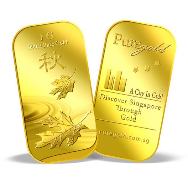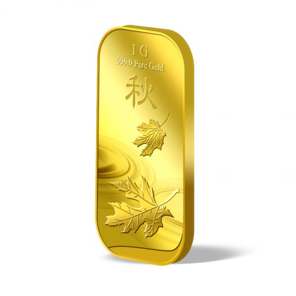The image is embossed on a 1g 999.9 fine gold bar.