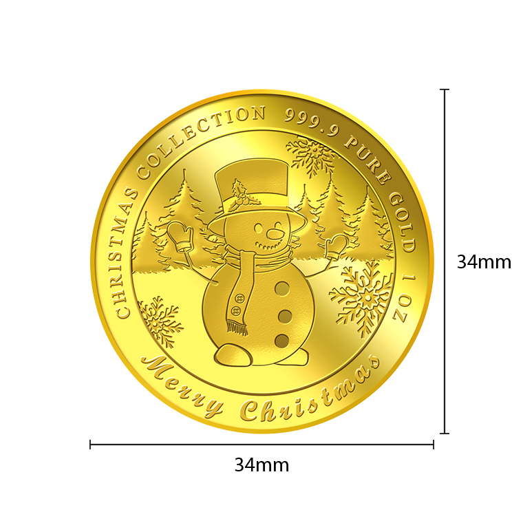 The image of Snowman is embossed on a 1oz 999.9 fine gold Medallion.