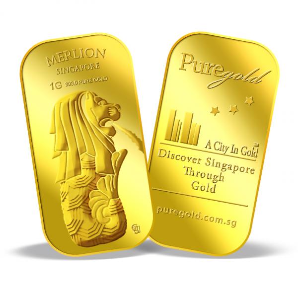The image of Singapore’s national mascot, the Merlion, is embossed on a 1g 999.9 fine gold bar.