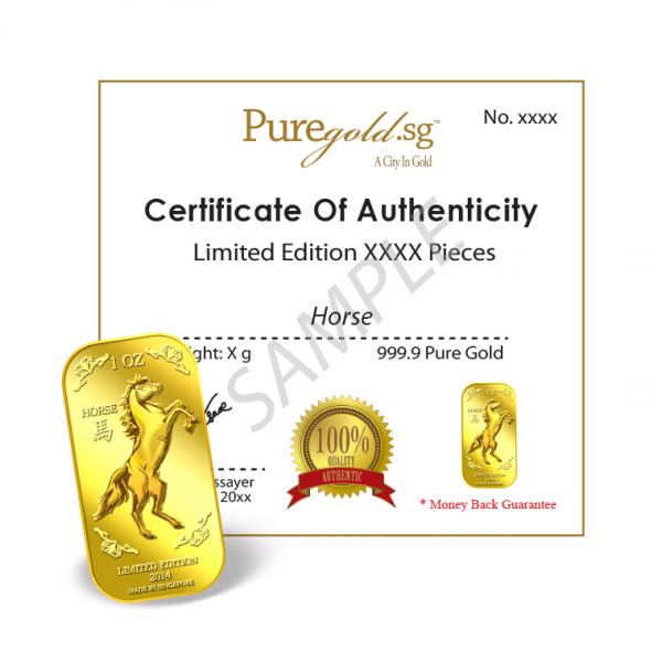 Each gold bar is accompanied by a GS Assay Certification of Authenticity.