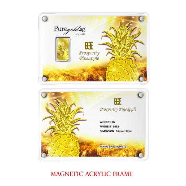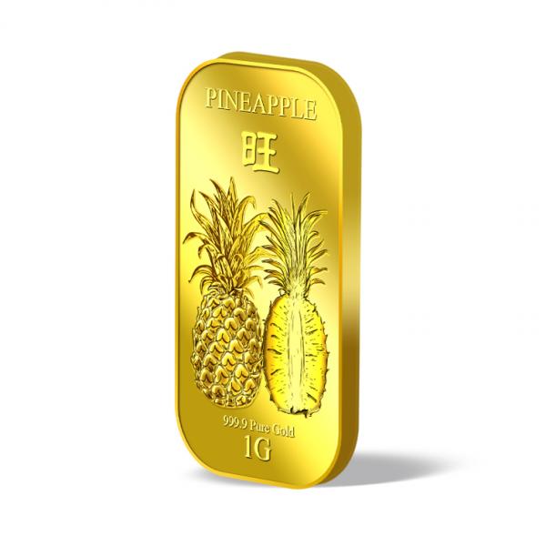 The image is embossed on a 1 gram 999.9 fine gold bar.