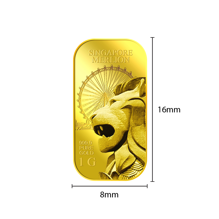 The image is embossed on a 1 gram 999.9 fine gold bar.