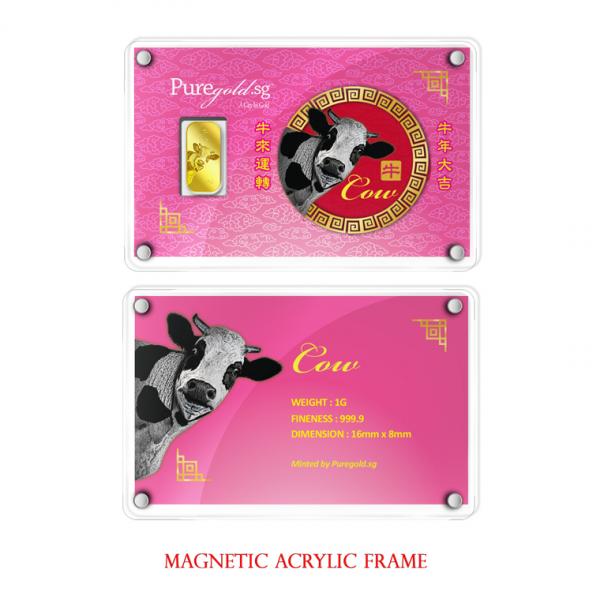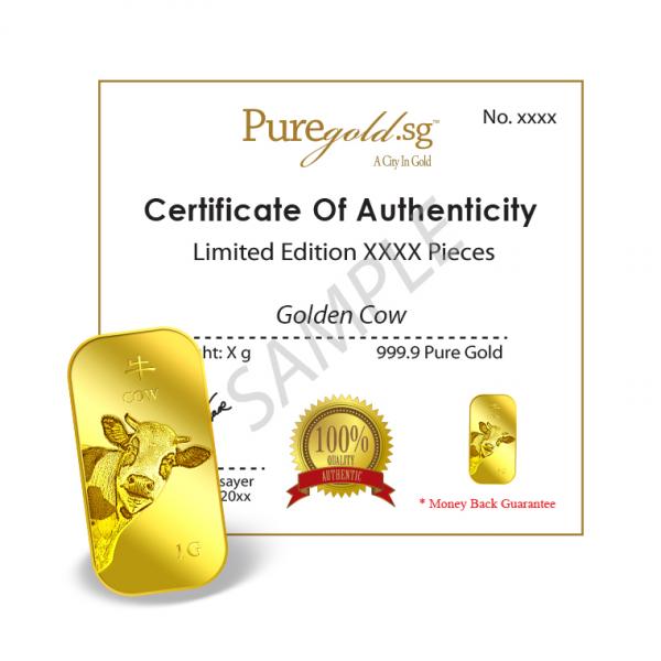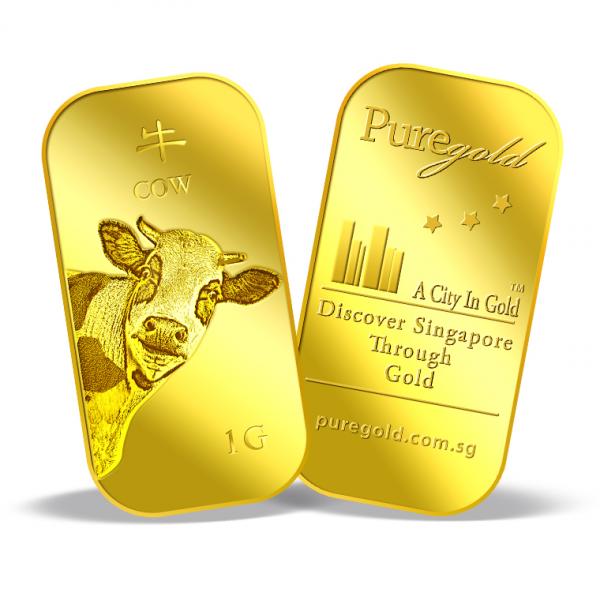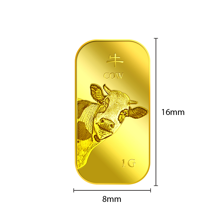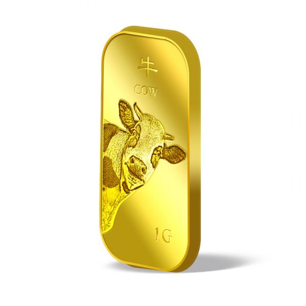 The image is embossed on a 1 gram 999.9 fine gold bar.