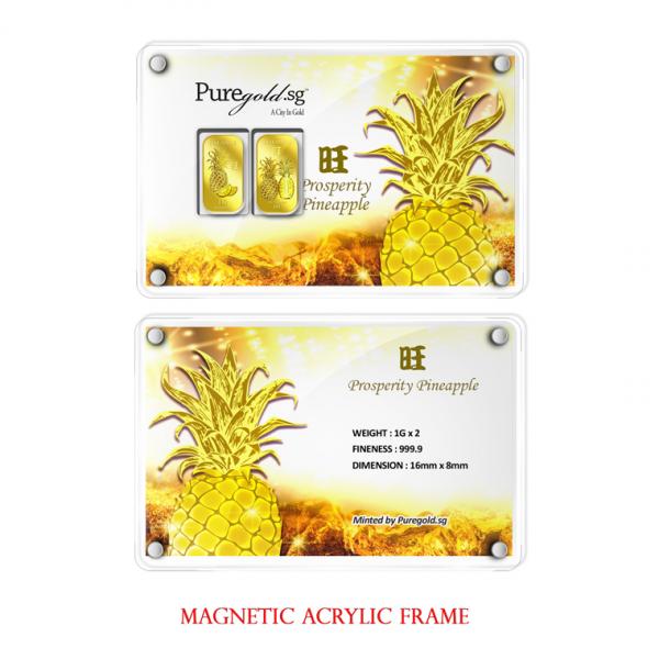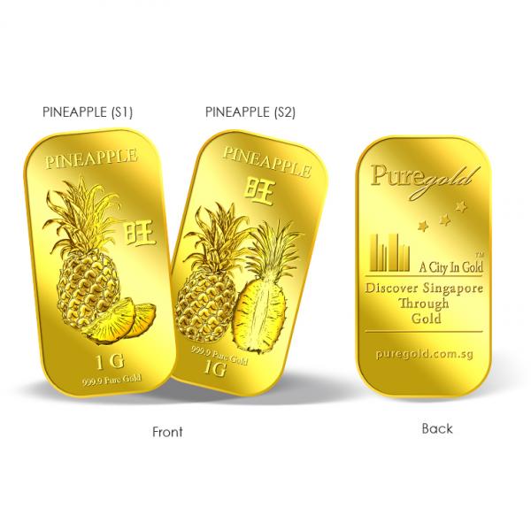 The image is embossed on a 1 gram 999.9 fine gold bar.