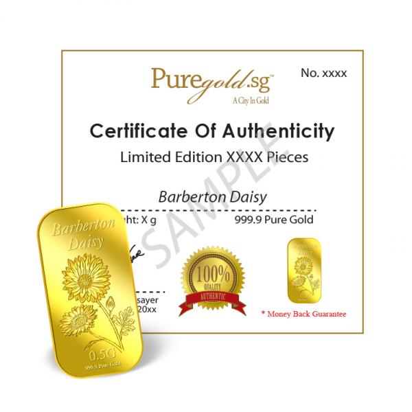 Each gold bar is accompanied by a GS Assay Certification of Authenticity.