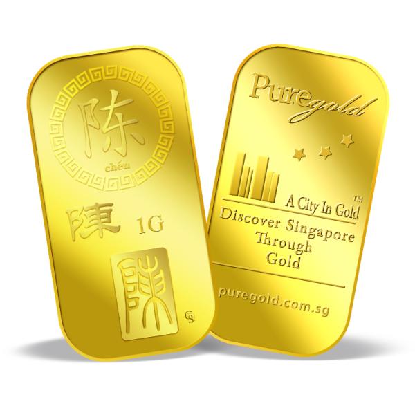 The image is embossed on a 1 gram 999.9 fine gold bar.