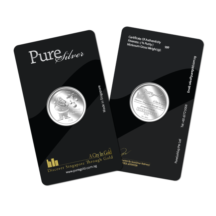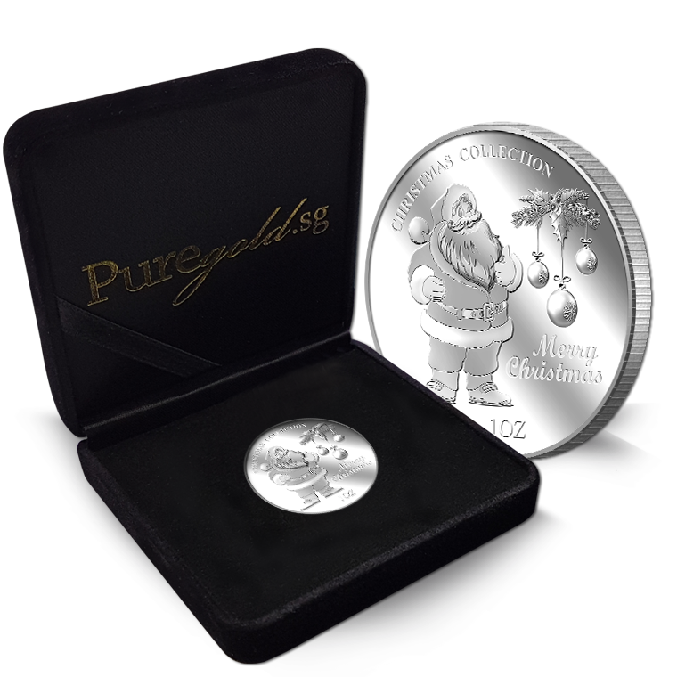 The image is embossed on a 1 troy oz 999 fine silver medallion.