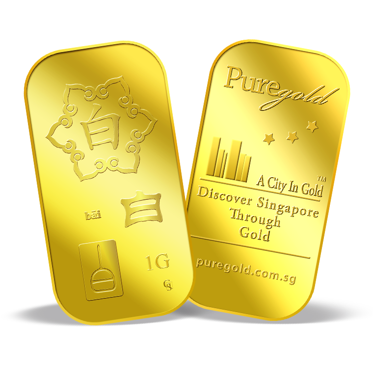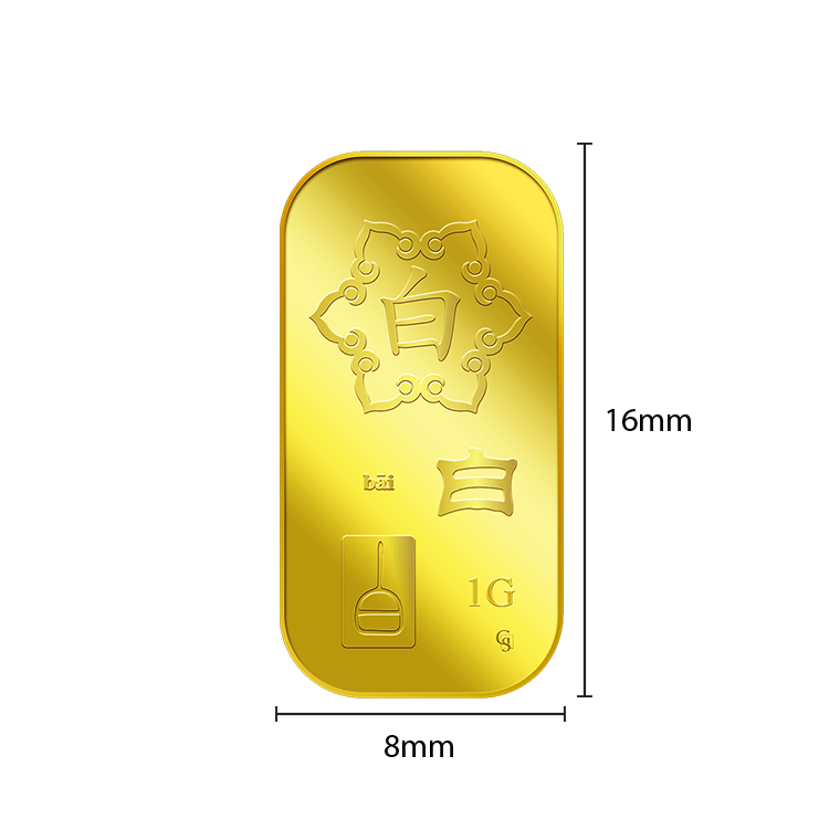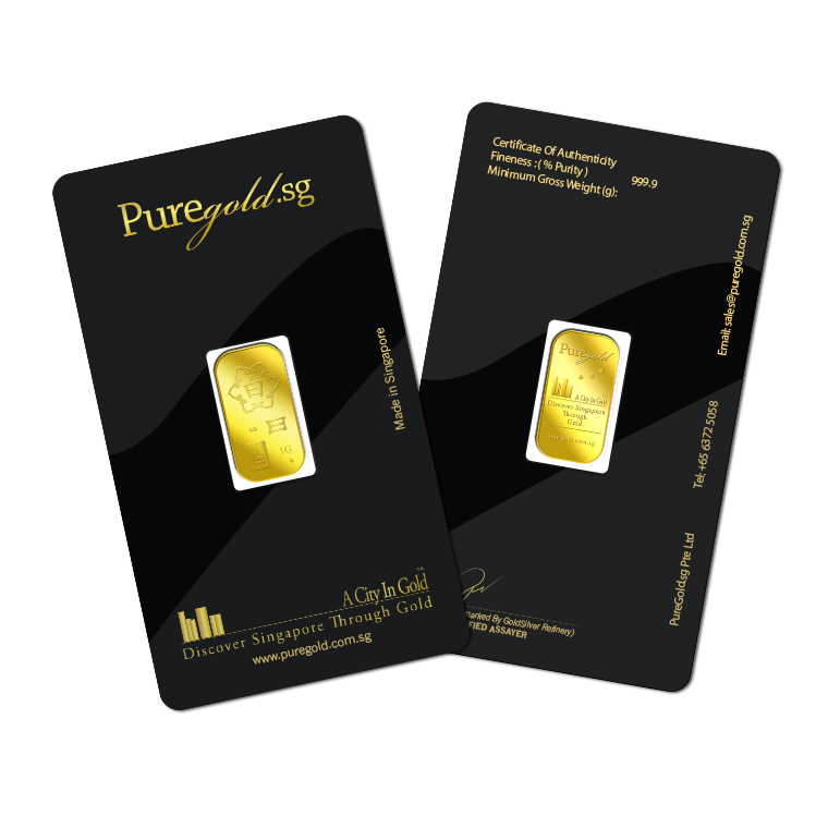 The image is embossed on a 1 gram 999.9 fine gold bar.