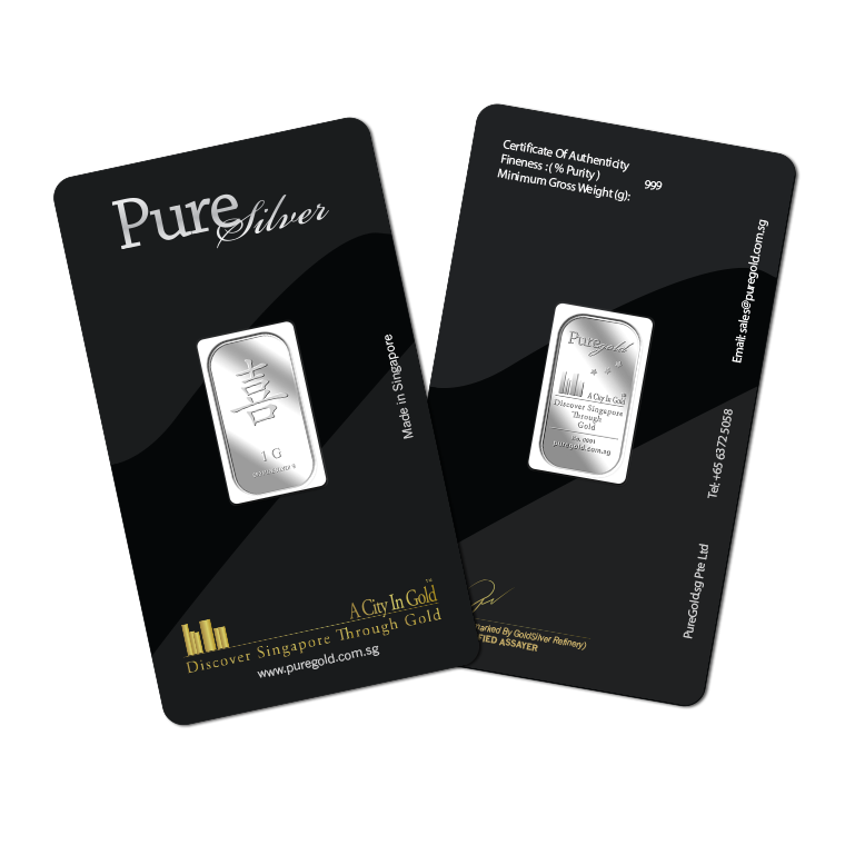 The image is embossed on a 1 gram 999 fine silver bar.