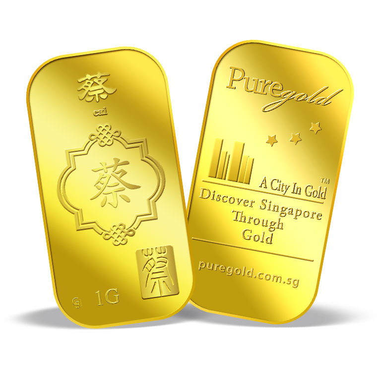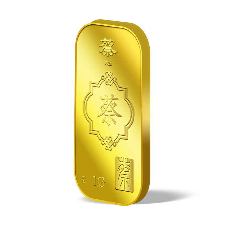 The image is embossed on a 1 gram 999.9 fine gold bar.