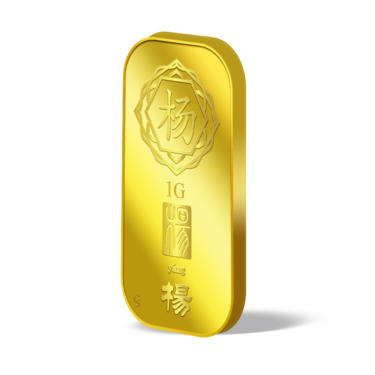 The image is embossed on a 1 gram 999.9 fine gold bar.