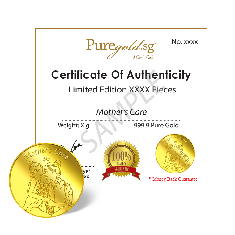 The image is embossed on a 5 grams 999.9 fine gold medallion.