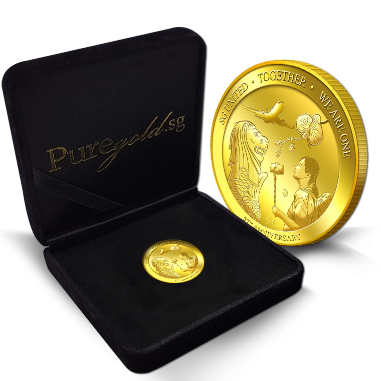 The image is embossed on a 5 grams 999.9 fine gold medallion.
