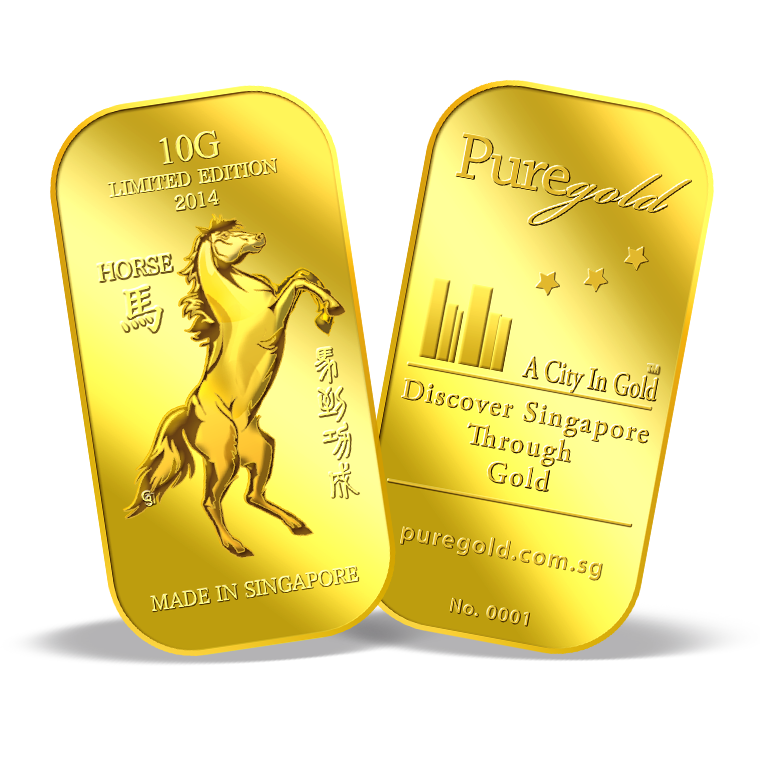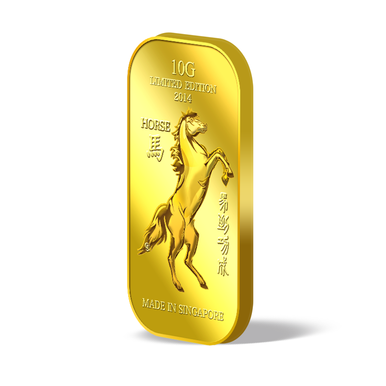 The image is embossed on a 10 grams 999.9 fine gold bar.
