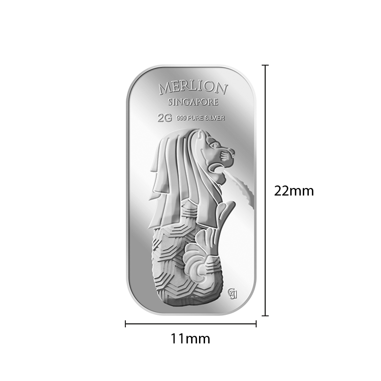 The new version of the Singapore Merlion gold bar design portrays Singapore’s national mascot, the Merlion, as a fountain with water gushing out from its mouth. The design also includes the inscription SINGAPORE «MERLION, the Medallion’s weight and fineness, and PureGold webpage address.