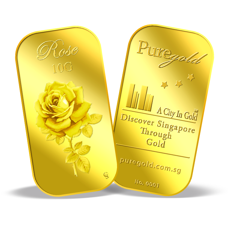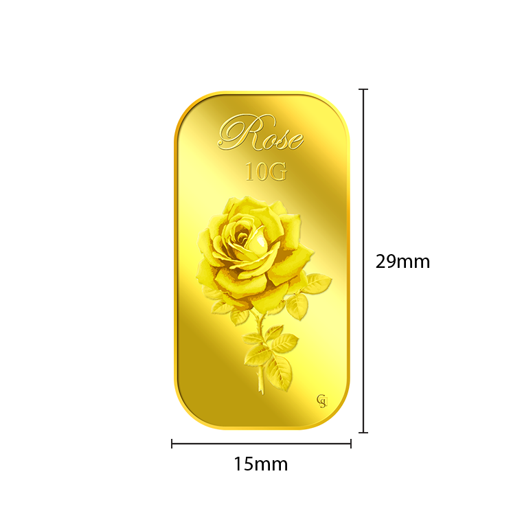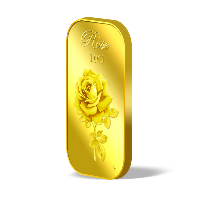 The image is embossed on a 10 grams 999.9 fine gold bar.