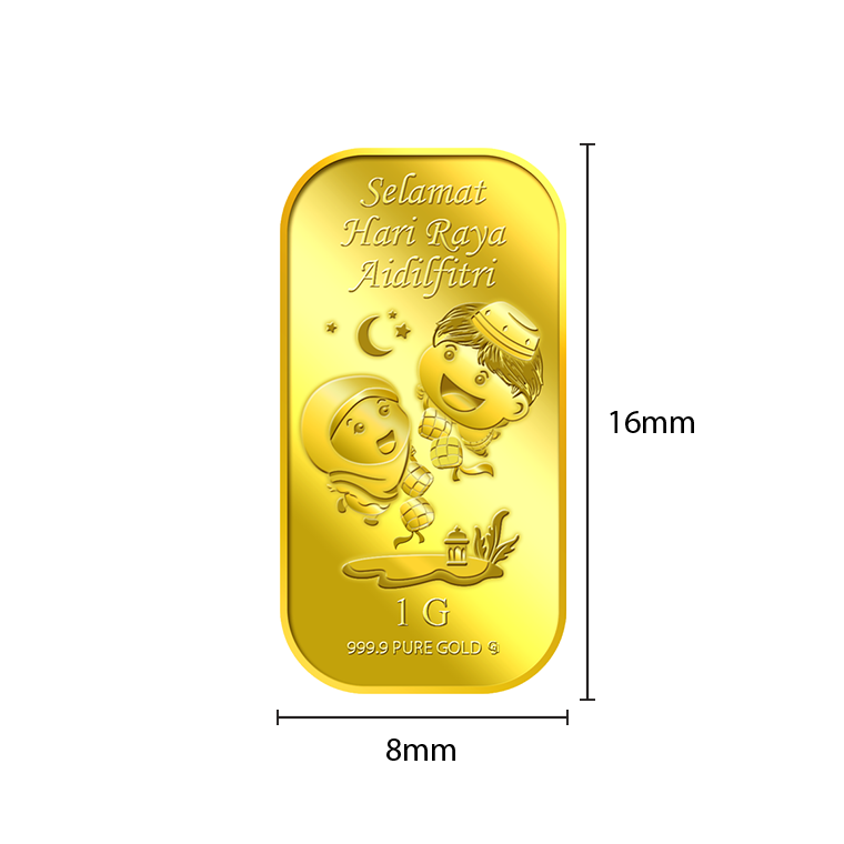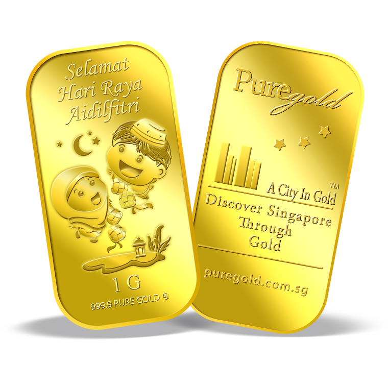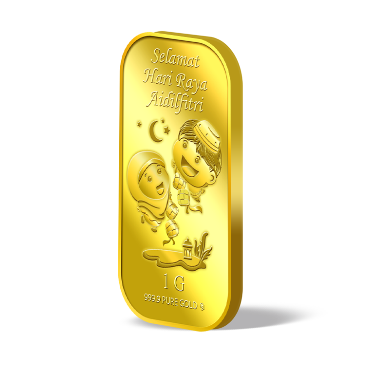 The image is embossed on a 1 gram 999.9 fine gold bar.