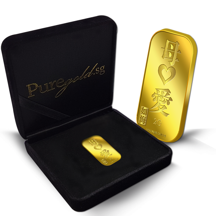The image is embossed on a 2 grams 999.9 fine gold bar.