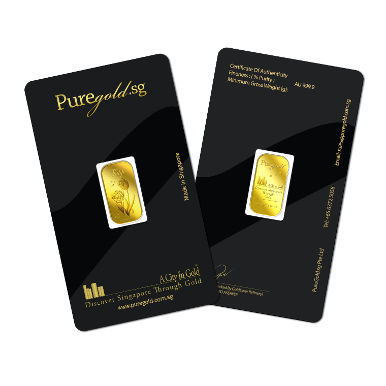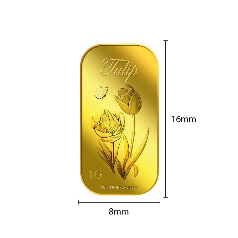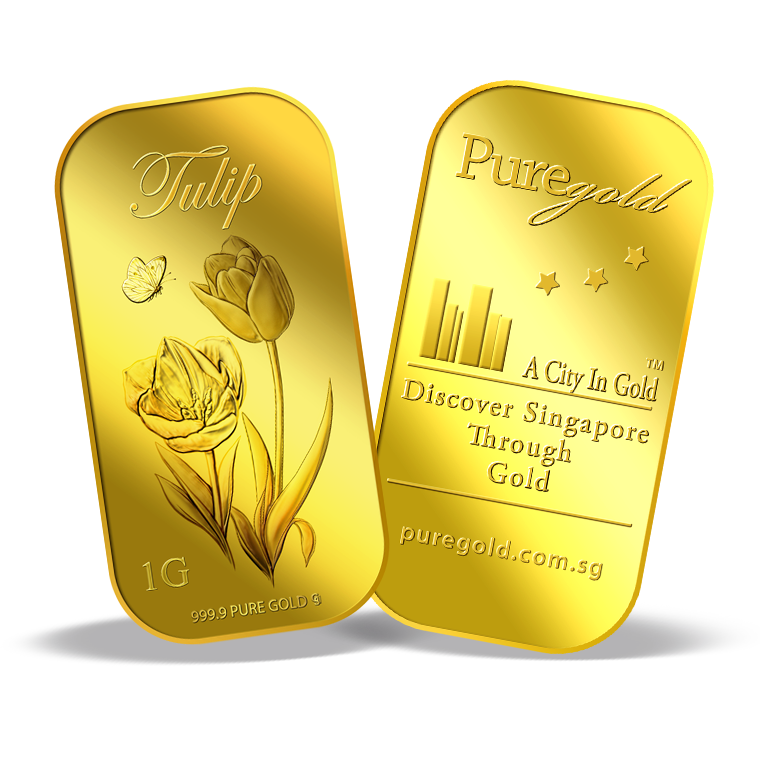 The image is embossed on a 1 gram 999.9 fine gold bar.