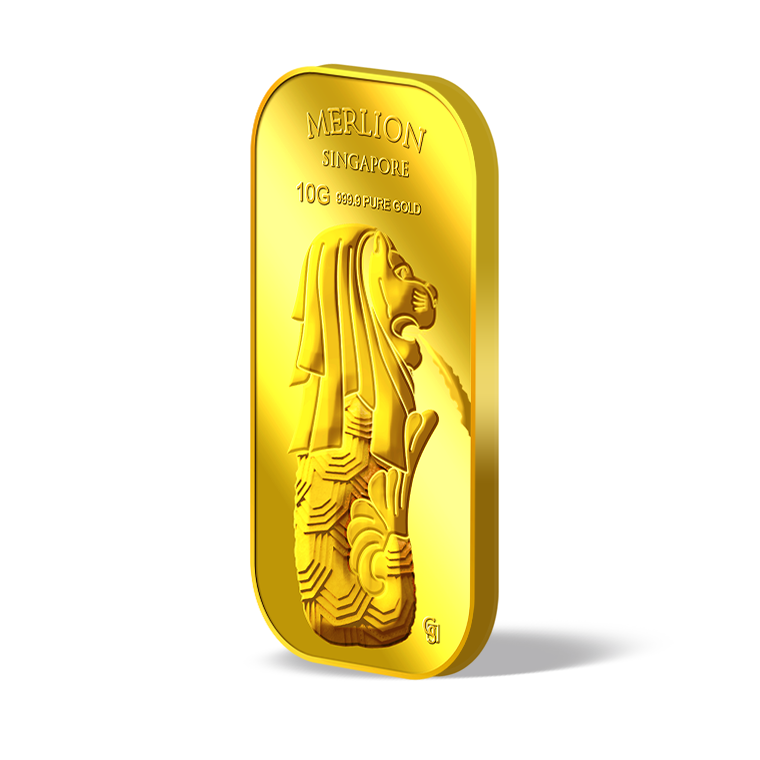The image is embossed on a 10 grams 999.9 fine gold bar.