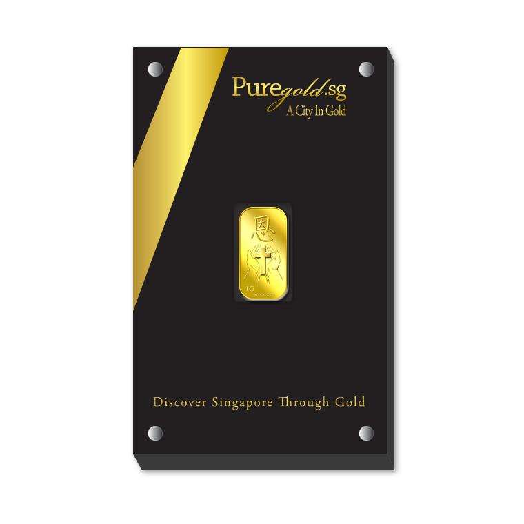 The image is embossed on a 1 gram 999.9 fine gold bar.