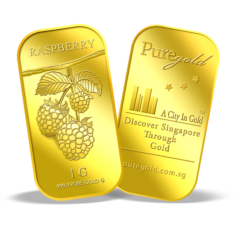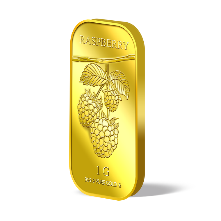 The image is embossed on a 1 gram 999.9 fine gold bar.