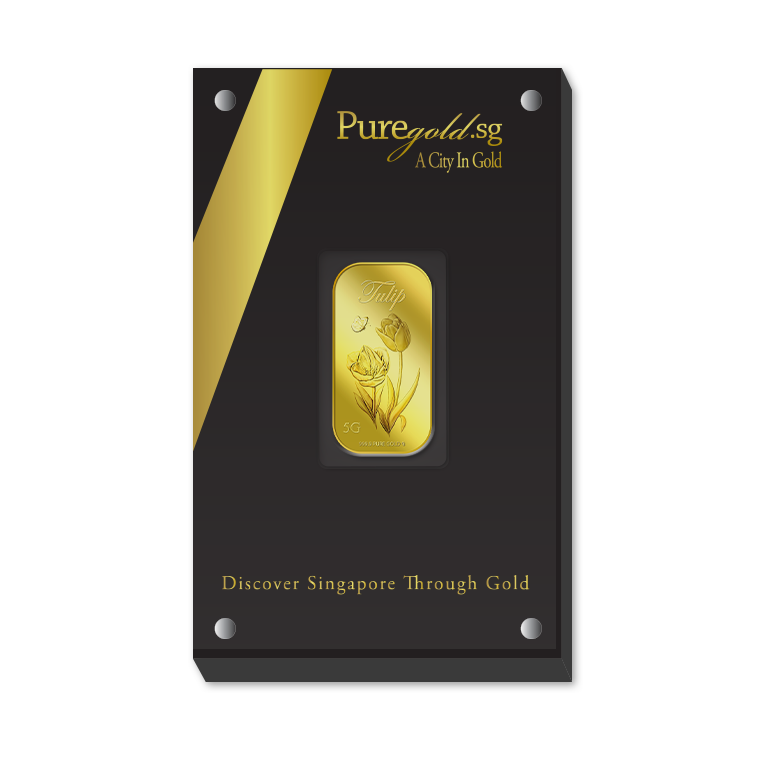 The image is embossed on a 5 grams 999.9 fine gold bar.