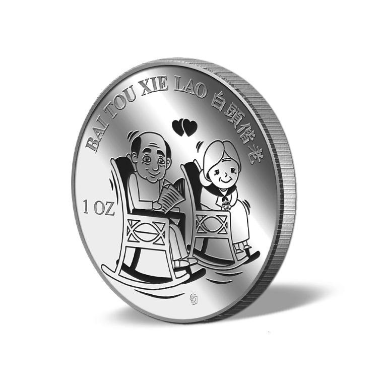 The image is embossed on a 1 troy oz 999 fine silver medallion.