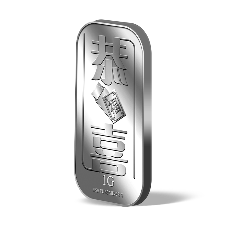 The image is embossed on a 1 gram 999 fine silver bar.