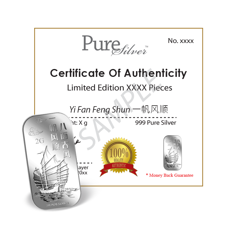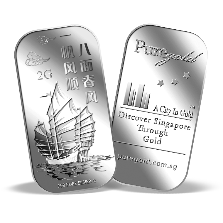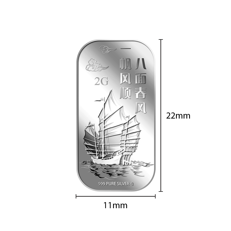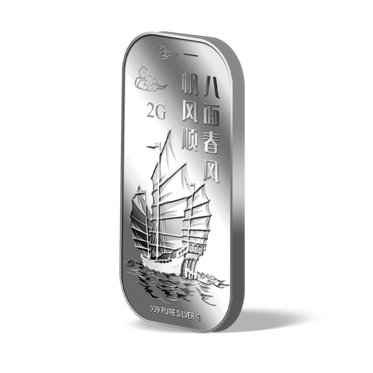 The image is embossed on a 2 grams 999 fine silver bar.