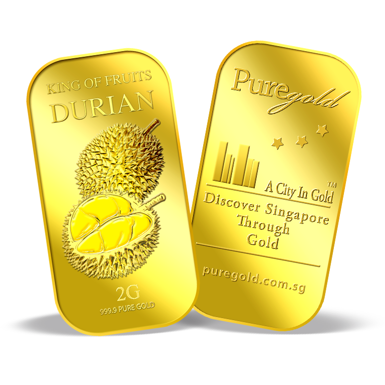 The image is embossed on a 2 grams 999.9 fine gold bar.