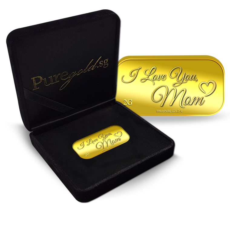 The image is embossed on a 2 grams 999.9 fine gold bar.