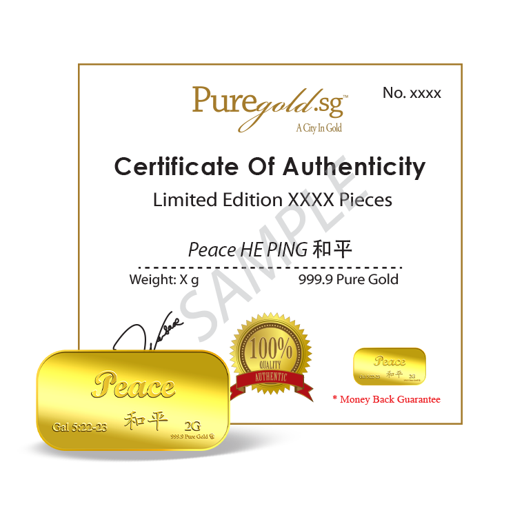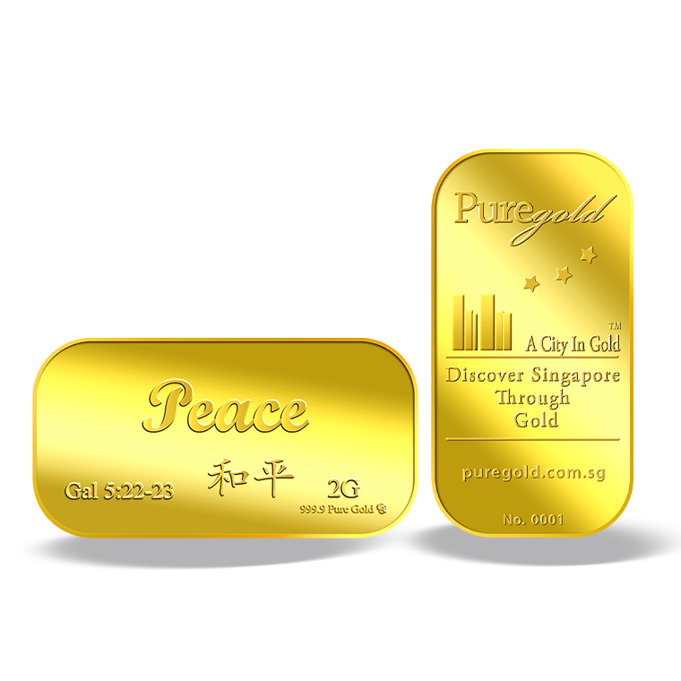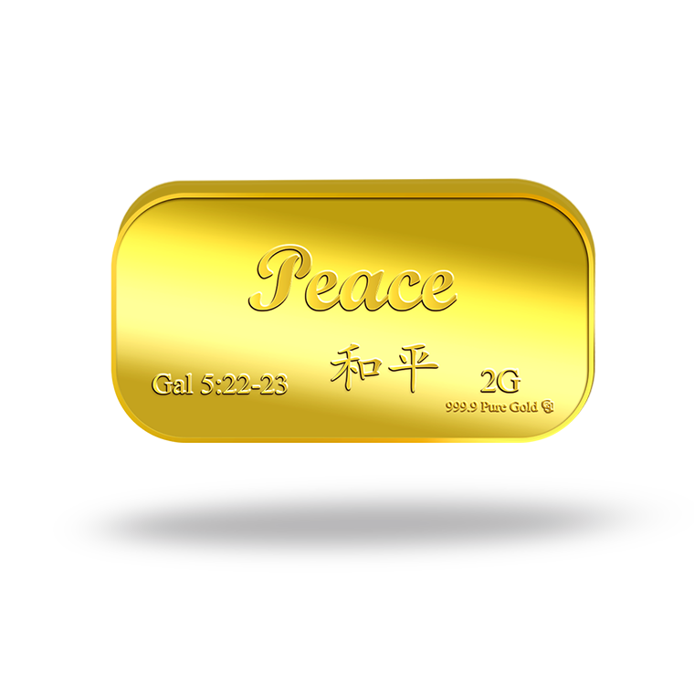 The image is embossed on a 2 grams 999.9 fine gold bar.