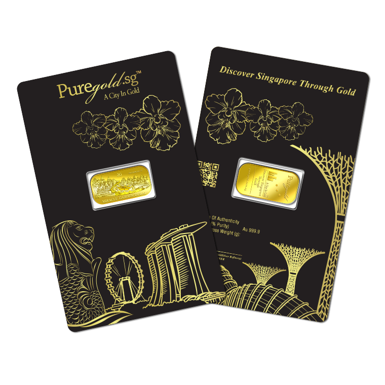 The image is embossed on a 2 grams 999.9 fine gold bar.