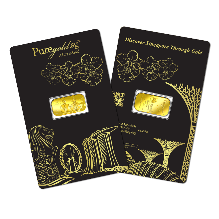 The image is embossed on a 2 grams 999.9 fine gold bar.