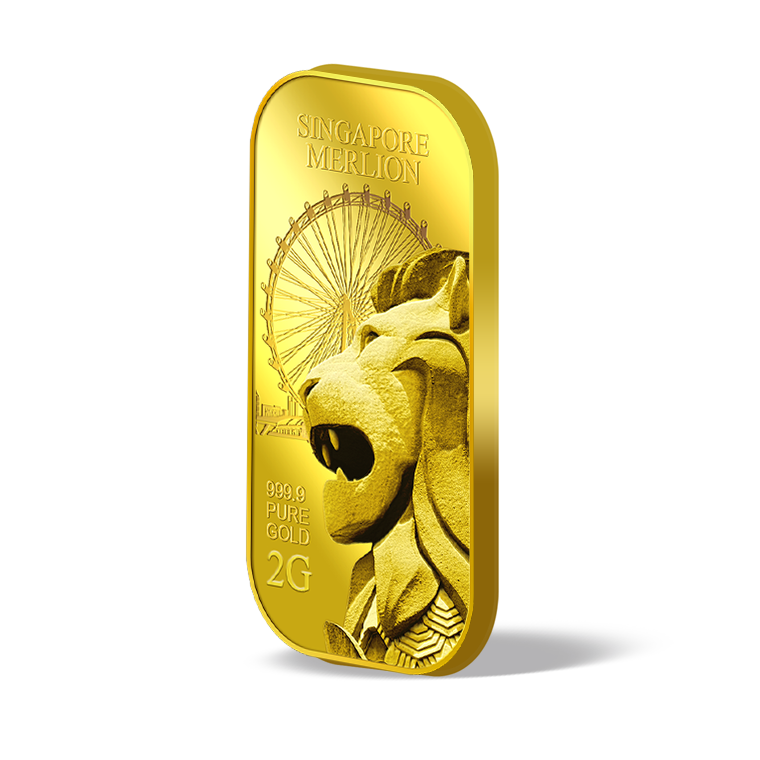 The image is embossed on a 2 grams 999.9 fine gold bar.