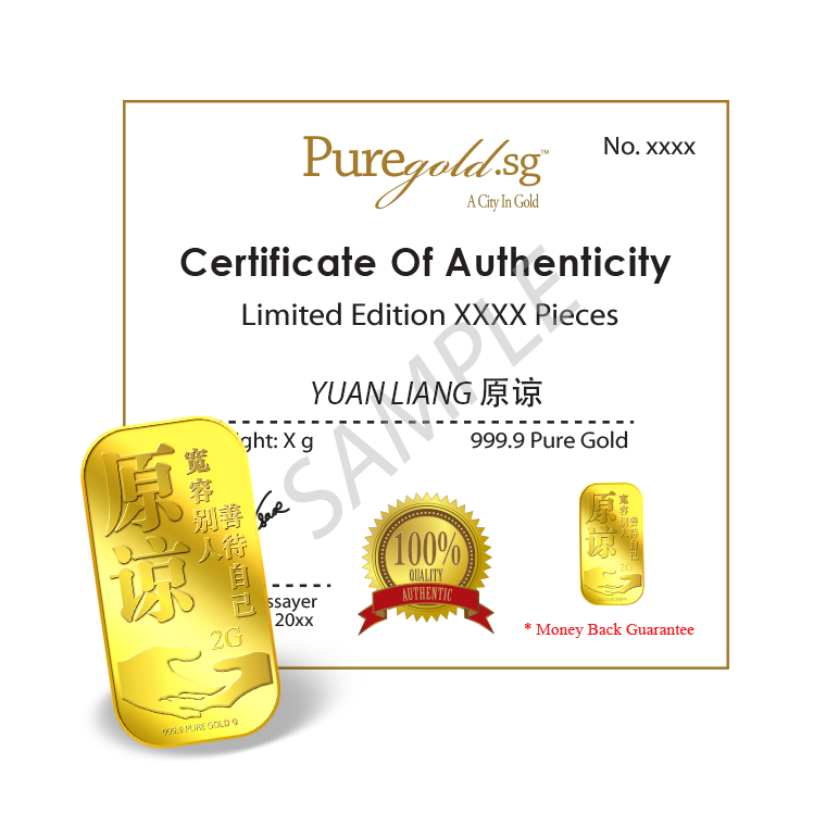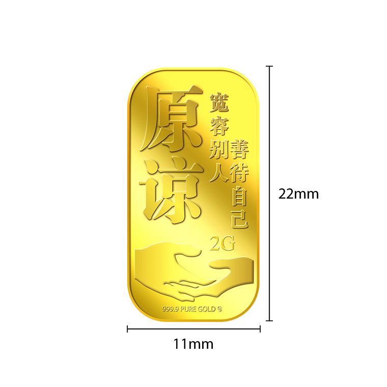 The image is embossed on a 2 grams 999.9 fine gold bar.