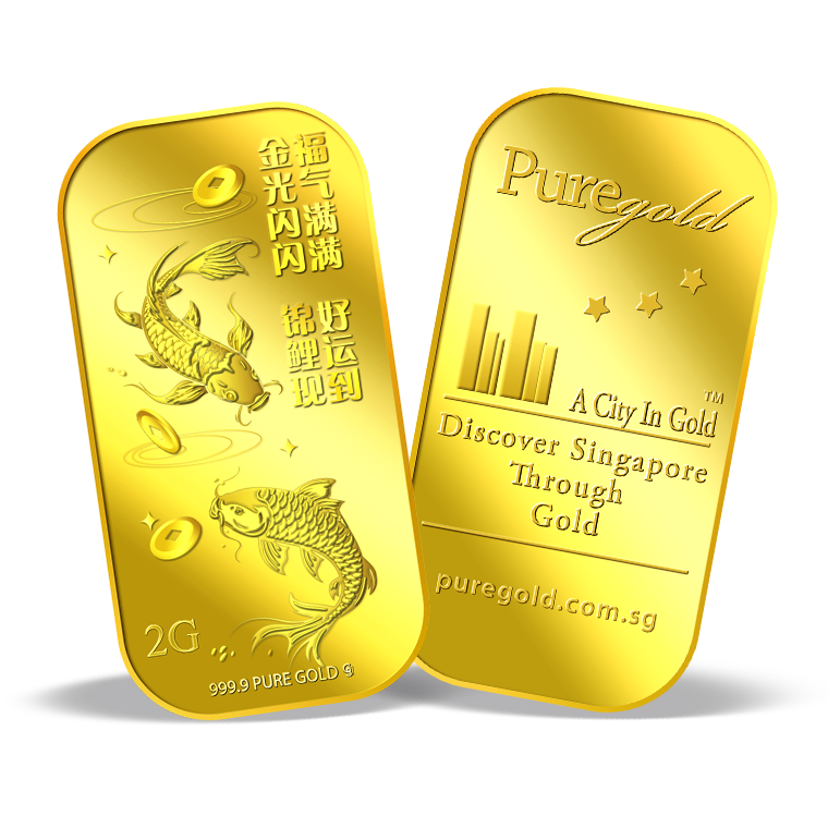 The image is embossed on a 2 grams 999.9 fine gold bar.